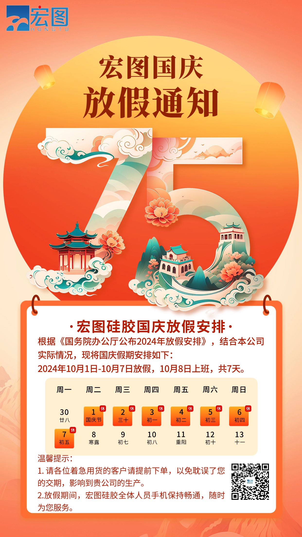 宏圖硅膠2024國慶放假通知!