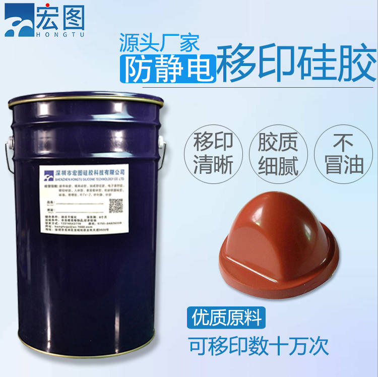 防靜電移印硅膠是一種雙組份加成型硅橡膠,分別是以A、B組分包裝的具有流動性的液體硅膠,可制備優(yōu)異的移印彈性材料。膠質(zhì)細膩,無雜質(zhì),回彈力好,移印圖案清晰,是制作膠頭的首選環(huán)保材料!